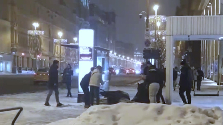 Тверская улица. У памятника Маяковскому в полночь разворачивалась настоящая драма: прохожие пытались привести в чувство двух лошадей, которые бежали почти галопом, но внезапно, как подкошенные, рухнули на тротуар.