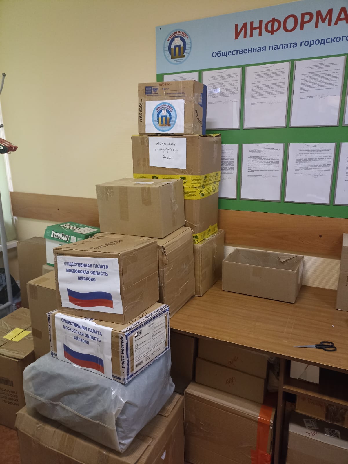 22 мая часть собранной гуманитарной помощи, в которую вошли продукты долгого хранения, медикаменты и многое другое, была передана в Щёлковский штаб помощи семьям мобилизованных граждан,