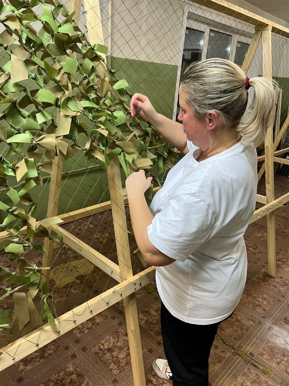 В Вербилках на ул.Забырина д.4 открылся пункт плетения маскировочных сетей.