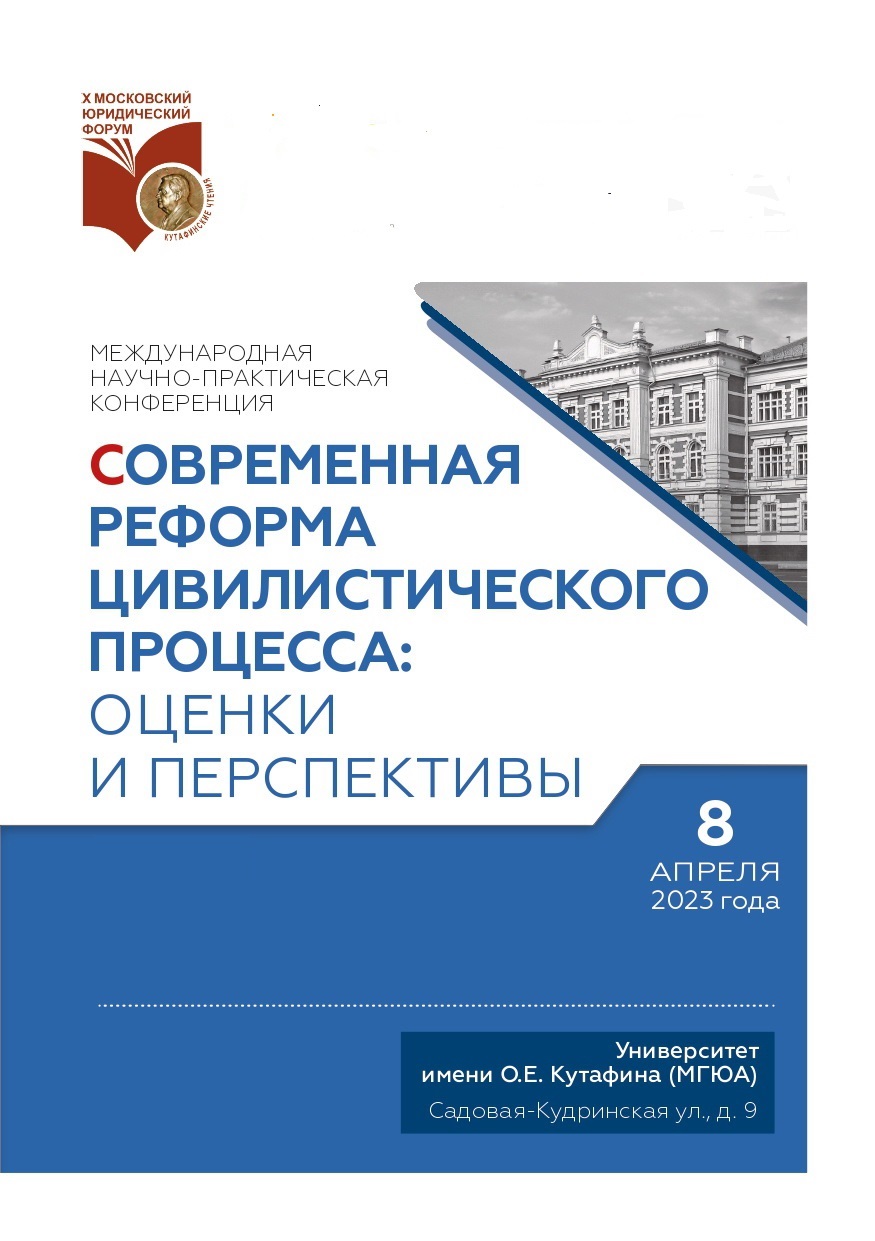 8 апреля 2023 года в Московском государственном юридическом университета имени О.Е. Кутафина (МГЮА) в рамках X Московского международного юридического форума «Устойчивое развитие России: правовое измерение» прошла Международная научно-практическая конференция «Современная реформа цивилистического процесса: оценки и перспективы».