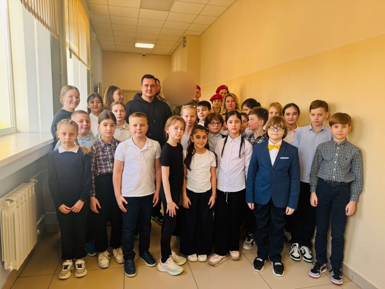 С учащимися Истринской школы им. А.П. Чехова встретились члены Общественной палаты м.о. Истра Павел Константинович Печурин (председатель комиссии по экологии и природопользованию ОП Истра) и Алексей Владимирович Шашкин (член комиссии по делам молодёжи, патриотическому воспитанию и развитию добровольческого движения (волонтерства) ОП Истра) совместно с представителями военного комиссариата - начальником отделения подготовки и призыва на военную службу Антоном Викторовичем Глебовым и ветераном ВС РФ (имя и внешний вид скрыты, так как ветеран является действующим военнослужащим).