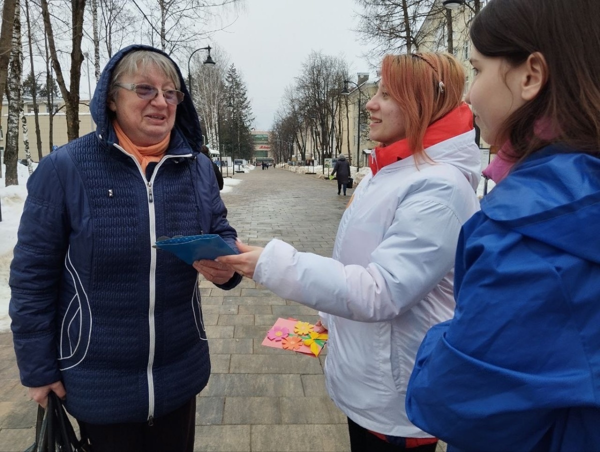 Активисты, сотрудники молодежного комплексного центра под руководством директора МКЦ, местного депутата, члена фракции «Единая Россия» Ренаты Демидовой совместно с воспитанниками дошкольного образования СОШ №9 имени дважды героя Советского Союза, лётчика-космонавта Валентина Витальевича Лебедева, в рамках мастер-класса изготовили поздравительные открытки для наших мам и бабушек. А молодые представители общественных организаций, в преддверии женского праздника, вручали эти открытки жительницам нашего города.