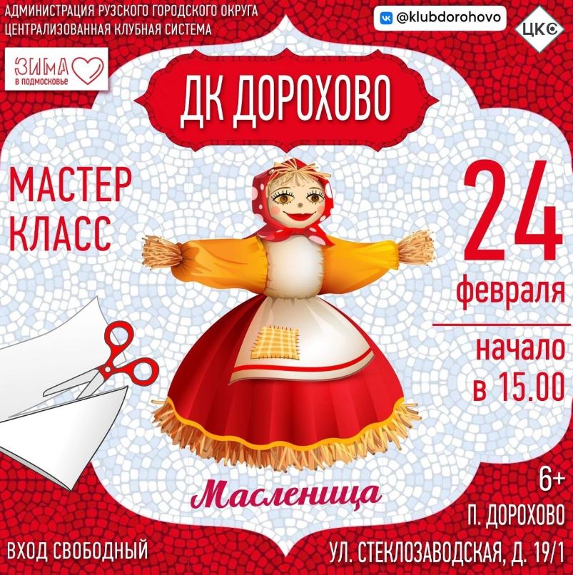 24 февраля в Дороховском доме культуры Рузского городского округа состоится мастер-класс «Масленица».