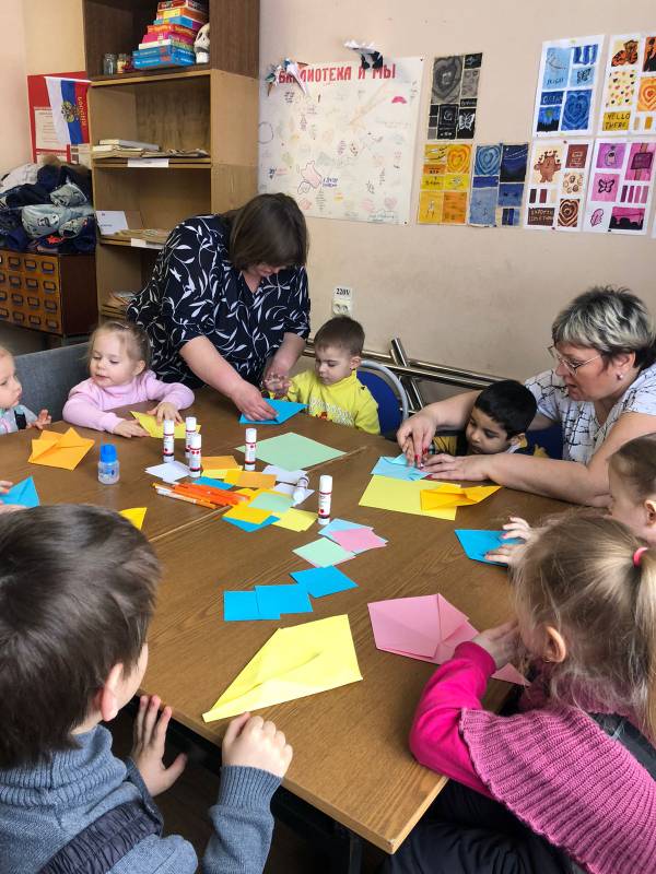 Дошколята Орешек делали подарки для мам в библиотеке