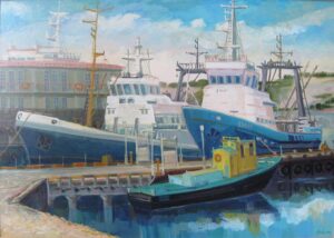 В экспозиции представлены морские пейзажи, а также работы, посвященные природе Мурманска и Владивостока.