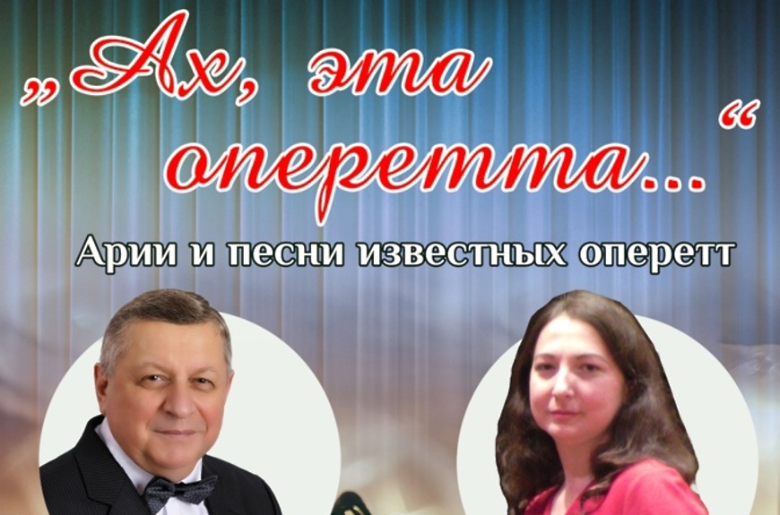 Состоится концертная программа „Ах, эта оперетта…», прозвучат арии и песни известных оперетт в исполнении Владимира Рой и Олеси Салиевой.