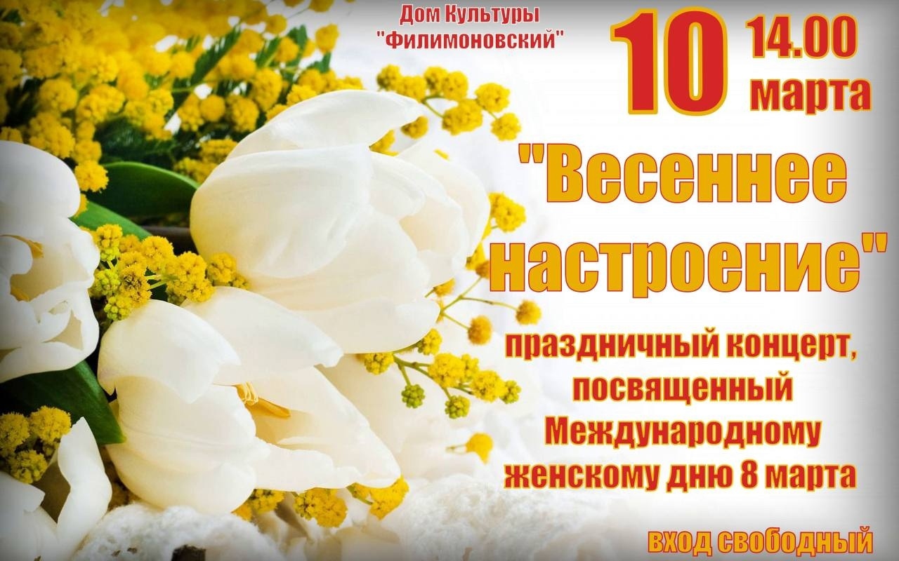 10 МАРТА В 14.00 для нежных и прекрасных дам состоится Праздничный концерт, посвящённый Международному женскому дню 8 Марта.