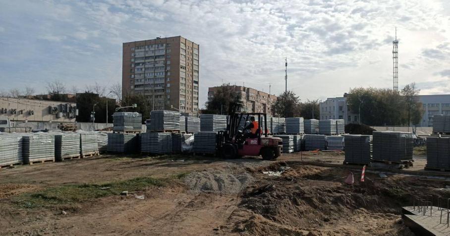Все работы ведутся в соответствии с производственным графиком. Завершены демонтаж старых элементов и подготовка площади, подведены все необходимые коммуникации. Рабочие устанавливают малые архитектурные формы, на 60 % уложена новая плитка. Впереди остаются самые важные этапы — устройство нового фонтана и стелы.