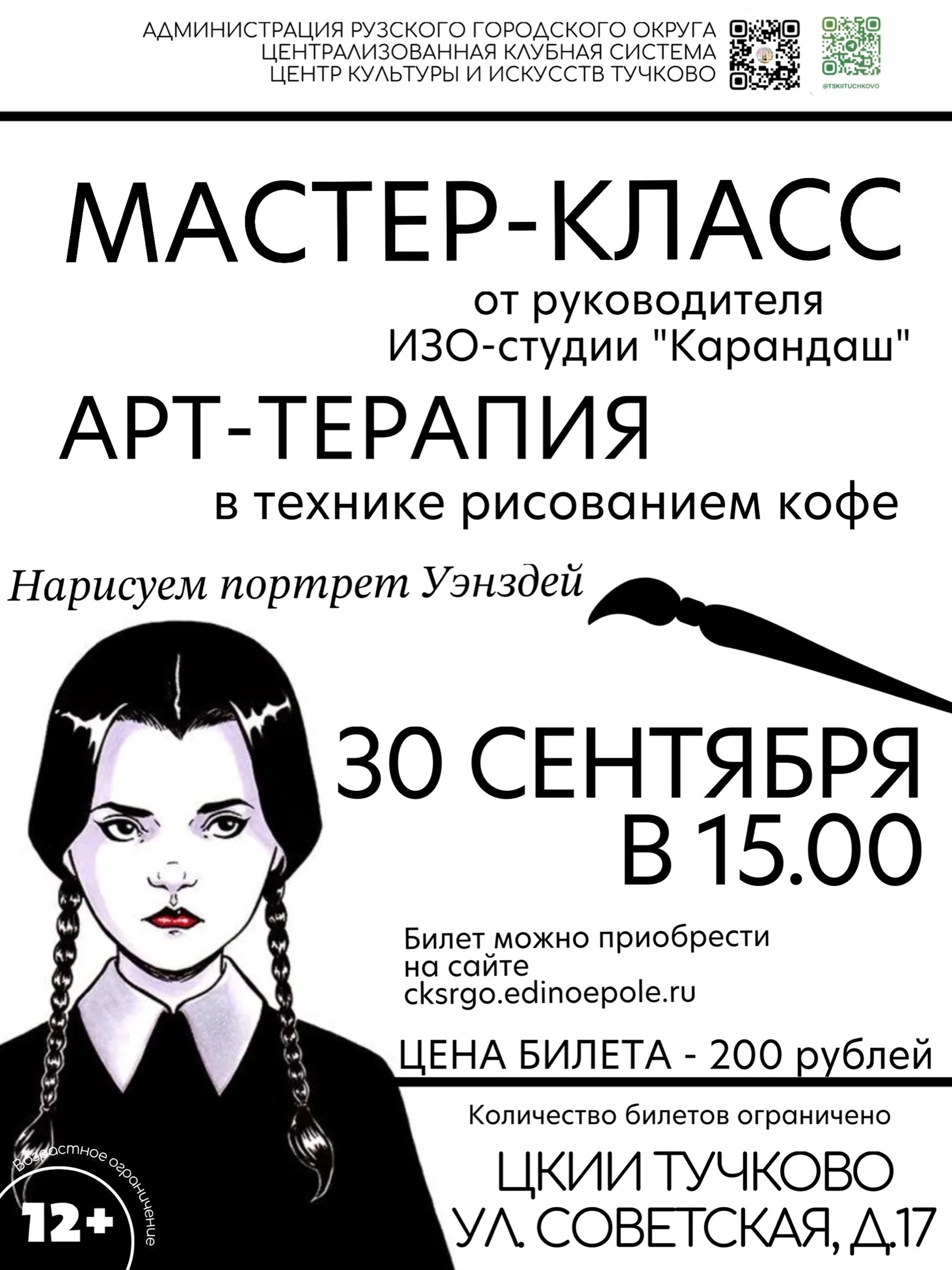 "Вместе c нами вы отдохнете, наполните свой день красками и под руководством опытного наставника напишете свою первую картину "Уэнздей" в технике "кофе"", - сообщили организаторы мероприятия.