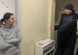 В квартире Натальи сегодня спустят воду из натяжного потолка. Специалист уже работает на месте. УК составит акт, чтобы компенсировать ущерб.
