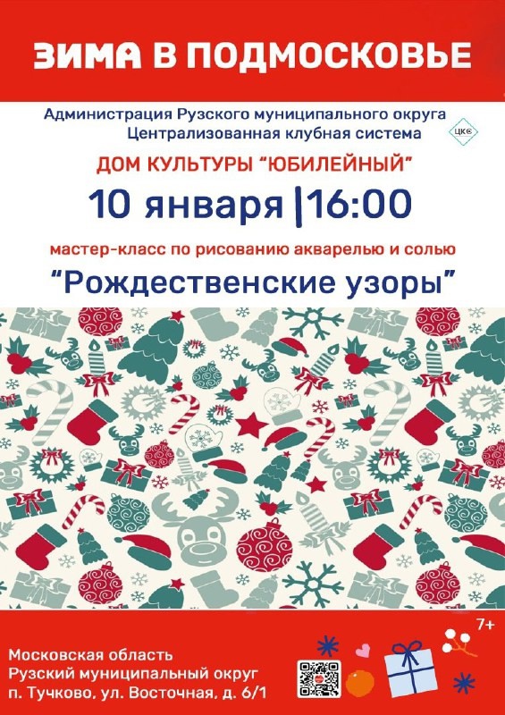 Дом культуры «Юбилейный» приглашает всех желающих на мастер-класс «Рождественские узоры», рисование акварелью и солью 10 января в 16.00.