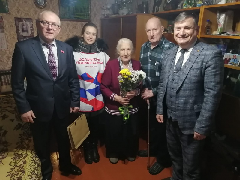 Председатель Совета депутатов городского округа Воскресенск, член политсовета местного отделения партии "Единая Россия" Владимир Кузнецов и руководитель фракции "Единая Россия" в Совете депутатов округа, депутат Сергей Слепов поздравили с юбилеем ветерана труда Анну Николаевна Перепелкину. Сегодня ей исполнилось 95 лет!
