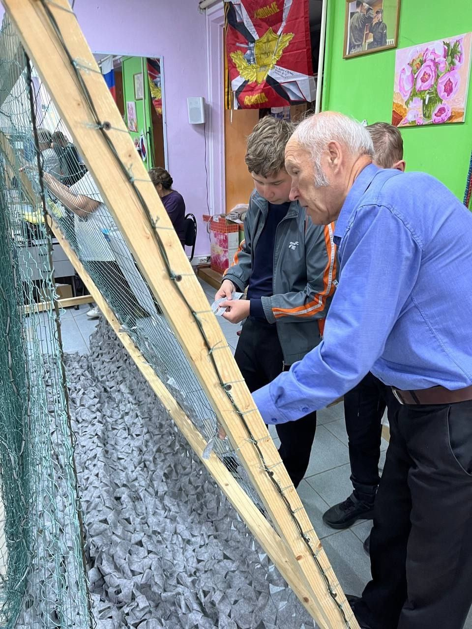 Волонтёры плетут маскировочные сети для участников спецоперации.