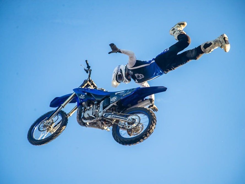 В Одинцове мотоэкстремал исполнил трюк, который под силу четырем людям в мире