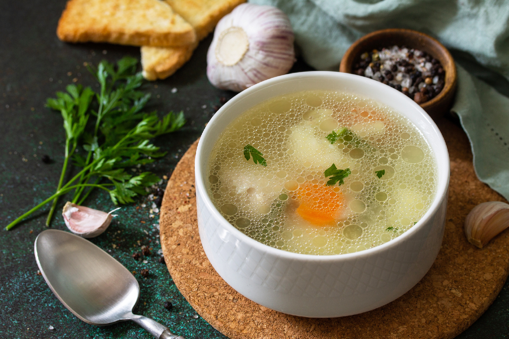 Бюджетный, калорийный и полезный обед, помогающий в работе желудочно-кишечного тракта, вполне реально. О том, как это сделать, рассказала врач-гастроэнтеролог Диляра Лебедева.В своем телеграм-канале «Очаровательный кишечник» специалист сообщила, что есть один замечательный продукт, который улучшает качество кожи и волос, помогает восстановиться после различных инфекций и отравлений, укрепляет суставы и кости, а также благотворно влияет на слизистую оболочку кишечника. Речь идет о костном бульоне, самое полезное в котором — высокое содержание коллагена и минералов.