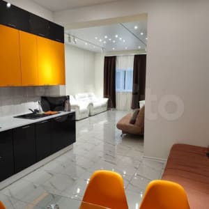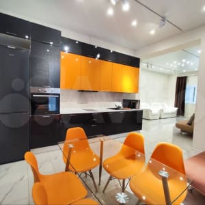 Апартаменты очень просторные: гостиная-зал 36 кв.м., спальня 18 кв.м., кухня-столовая 20 кв.м., с/у 7 кв.м., прихожая 4 кв.м.