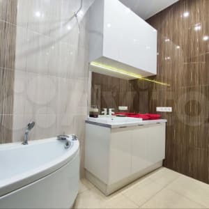 дорогая входная дверь, стальная бронир. с дерев отделкой, дорогие межкомнатные двери орех и чёрное полированное стекло, окна удобного и распашного открывания без импостов с фрамугами, 3-е стеклопакеты, бесшумные инверторные кондиционеры, стильная мебель, все полы с регулируемым водяным! (без эл-магн. излучения) подогревом, керамогранит в спальнях в стиле паркета, стены и полы с/у керамогранит, освещение только LED, оригинальная сантехника Италия и Чехия, дорогая ванна с аэро-гидро-массажем, большой шкаф в спальне, кож. диван и кресло раскладываются, в спальне 2-х спальная кровать с ортопедическим матрацем и подушками-одеялами, постельное бельё, полотенца, встроенная кухонная техника: новый стильный цвета графит холодильник, стир. машина, посудо-моечн. машина, духовка, варочн. встроен. панель с сенс. управлением, вытяжка, раковина на 2 чаши, стеклянный стол, стулья, посуда, сервиз, бокалы, стол приборы, доски, ножи, чайник, утюги, глад.доска, пылесос, ТВ 127 см Samsung, цифр ТВ, оптиковолокон internet 800 Мb/s.