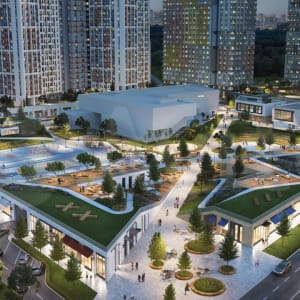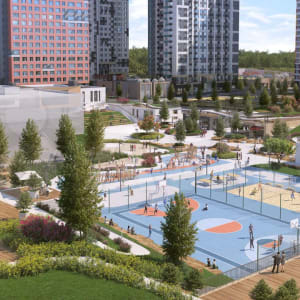 На первых этажах корпусов уже открыты магазины, салоны красоты, кафе и пекарни. Детские и спортивные площадки обустроят на стилобате, также создается ландшафтный парк.