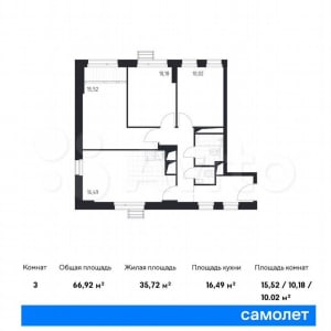 - Общая площадь: 66.9 м²