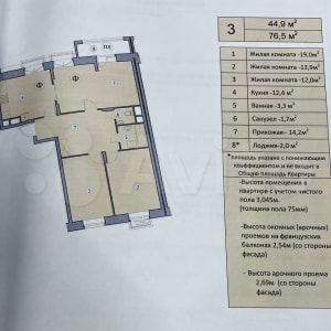 - Общая площадь: 76.5 м²