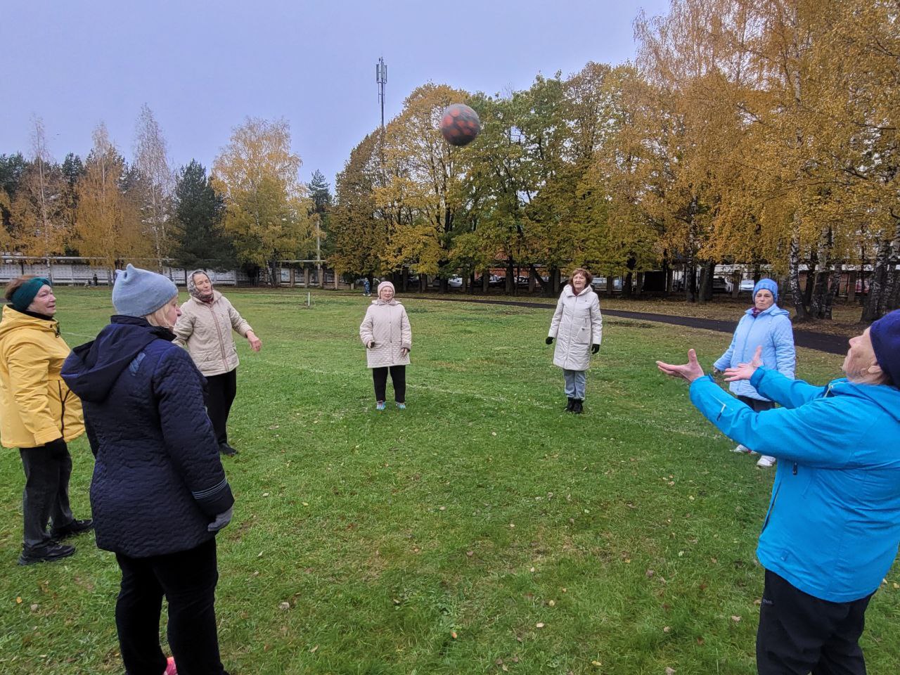 Участники программы "Активное долголетие" Рузского городского округа занимаются физической культурой на свежем воздухе.
